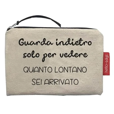 TAKE IT EVERYWHERE: Made of durable cotton, this bag is lightweight and practical. Available in black and raw, you won't find it easy to choose from all the phrases, drawings and initials available! THE RIGHT MEASURE: This Hello-Bags measures 14 cm (width) by 10 cm (high). Ideal as a purse. You can take your cash, credit cards, small cosmetics, small jewelry and feminine hygiene products, among others. THE IDEAL GIFT: Packed in a nice kraft envelope, this bag will draw a smile wherever you give it. ETHICAL MANUFACTURING: The Hello-Bags factory is audited by BSCI. This ensures, among other things: not child labour, non-discrimination, fair remuneration, fair working time, safety at work and environmental protection. LINING: Includes a practical polyester lining.