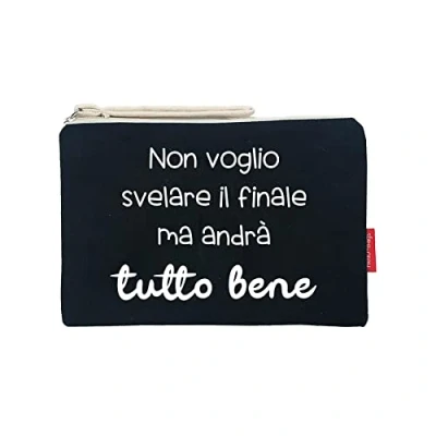 THE VERSATILE BAG: Made of durable cotton, this bag is versatile as it can be used as a cosmetic bag or as a handbag. Available in raw and black, you won't find it easy to choose from all the phrases, drawings and initials available! THE RIGHT MEASURE: This Hello-Bags measures 23 cm (width) by 15.5 cm (high). As a cosmetic bag, you can carry your essential cosmetics and toothbrush. As a handheld wallet, you can carry credit cards, cash, mobile, glasses and keys. THE IDEAL GIFT: Packed in a nice kraft envelope, this bag will draw a smile wherever you give it. ETHICAL MANUFACTURING: The Hello-Bags factory is audited by BSCI. This ensures, among other things: not child labour, non-discrimination, fair remuneration, fair working time, safety at work and environmental protection. LINING: Includes a practical polyester lining.