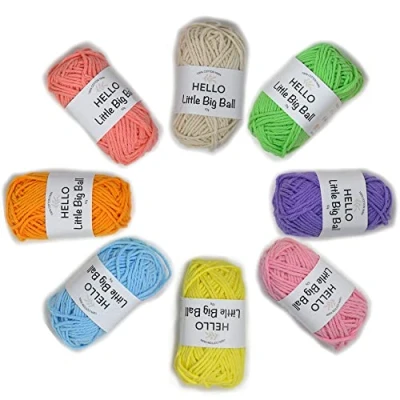 Pack of 8 colours of 100% cotton yarn Each ball weight 10g, 25m, 27 yards Recommended knitting needle hook: 3mm Recommended crochet hook: 2.5-3.5 mm