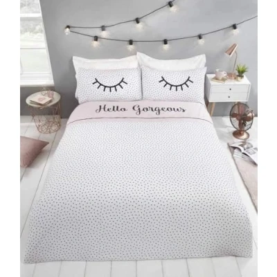 Hello Gorgeous Polka Dot Double Duvet Cover Set Reversible Bedding Bed Linen