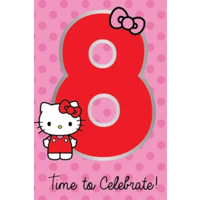 Cute Hello Kitty 8th birthday card with colourful design and included themed sticker for an extra fun finishing touch. Tailored to bring a smile by Europe's leading publisher of Licensed Greetings Cards Arrives with a suitably sized envelope for your convenience Perfect addition to any birthday gift or birthday party, adding a unique and personal touch Thoughtfully designed birthday card featuring eye-catching artwork and a celebratory message, ideal for making their special day even more memorable.
