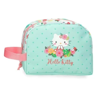 Hello Kitty Floral Toiletry Bag Green 20.5x16.5x7.5cm Polyester