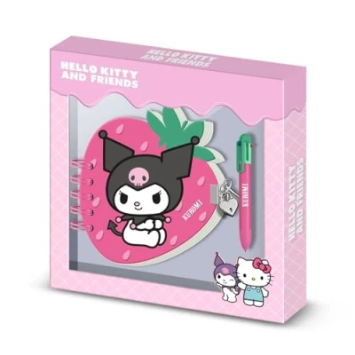 Hello Kitty Kuromi Strawberry Pack of Diary + 6 Coloured Pen, Pink