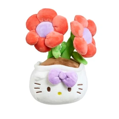 Hello Kitty Plants Plush, 20cm Soft Toy with Purple Ribbon and Floral Design, Cute Character, Official Licensed Merchandise, Gift for Fans Collectors, Suitable Ages 4+