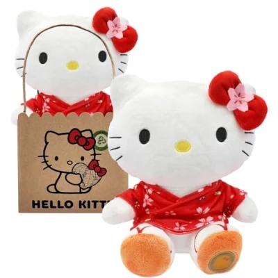 Hello Kitty with Kimono Eco Plush 14 x 13 x 24 cm In reusable cardboard bag The plush is made from 100% recycled PET bottles - the packaging is made from certified FSC paper. Cuddly soft plush - a real eye-catcher and cuddly friend for every Hello Kitty lover Many details make your girlfriend Hello Kitty even sweeter