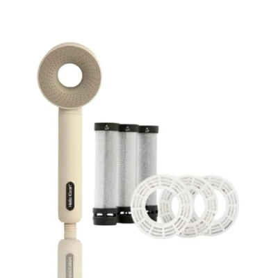 Hello Klean Shower Head in Beige with 1 Year Supply of Refill Cartridges Starter Kit Filters to Remove Unwanted Heavy Metals, Chlorine & Impurities from Water Easy Install Saves 25%