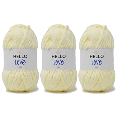 Hello Love baby blanket yarn. Perfect for crocheting or knitting. Soft yarn for amigurumi, plush toy or blankets 100% Polyester Yarn. Weight: Super Bulky/Super Chunky (6) Knitting Gauge: 8 sts and 13 rows with a 8 mm (U.S. 11) knitting needle Crochet Gauge: 8 sc and 8 rows with a 6.5 mm (U.S. K) crochet hook Come in pack of 3x 100g balls