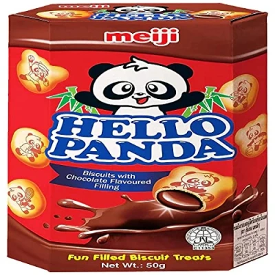 Meiji Hello Panda Biscuits with Chocolate Filling are bite-sized, crispy biscuits filled with creamy chocolate and stamped with playful panda illustrations. Perfect for snacking or sharing, these delicious treats bring fun and delight to all ages.