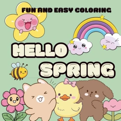 HELLO Spring Fun and EASY COLORING: Bold Simple Coloring Book with Happy Scenes for All Ages