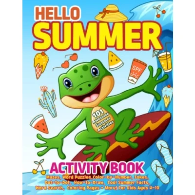 Hello Summer Activity Book: 101 Awesome Activities: Mazes, Word Puzzles, Color by Number, Jokes, Dot to Dot, How Draw, Cool Facts, ... Coloring Pages + More! For Kids Ages 4 10