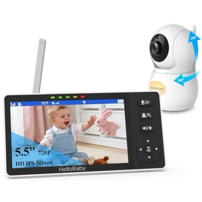 HelloBaby Baby Monitor with 1080P Camera,Video Camera and Night Vision, 5.5’’ Split IPS Screen, No WiFi, ECO Mode, 2 Way Audio, Pan Tilt Zoom, 1000ft, Temp Display, Light