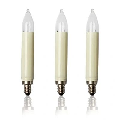 Replacement lamp suitable for fairy lights, candle arches, light arches, Christmas decoration and Christmas tree lighting of many brands. This means that our replacement bulbs are independent of the brand and manufacturer. Total length of replacement candle approx. 10.5 cm and diameter of the replacement bulbs approx. 1.5 cm. Easy replacement of Christmas tree candles with Edison base. Suitable for use in indoor and outdoor fairy lights. Sustainable use of the fairy lights by using replaceable replacement bulbs.