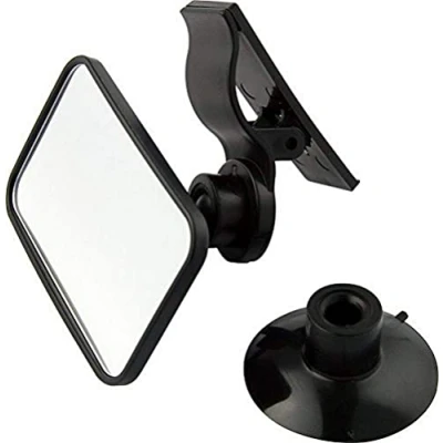 Car accessory mirror with suction cup and clip.