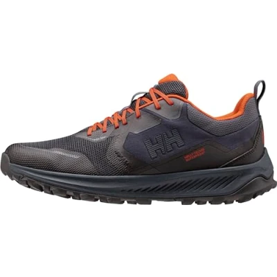 Lightweight, cushioned, and supportive trail shoes for the agile hiker The trail is calling; our supportive, lightweight, and protective hiking shoes will take you all the way; they’re fully waterproof with our trusted HELLY TECH membrane; the flexible midsole is designed for comfort and stability; our HH Max-Grip sole technology is known for superior traction; with the environment in mind, 60% of the upper is made with recycled materials HellyTech WATERPROOF, HH Quick Dry, HH Seam-Shield, HH Lite-Frame, HH Pro Guard, HH Power-Stride, HH Free-Flex, HH Comfort Insole, HH Max-Grip, HH Max-Vent, HH Max-Comfort Insole 100% Recycled Lace, 100% Recycled Polyester Webbing, 100% RPET Reinforcement Tape and Collar Reinforcement, 100% Recycled Lining, 30% Recycled Rubber, Antimicrobial treatment to prevent odour, 100% Recycled Polyester Strobel, Non-marking rubber soles, More than 60% of the upper is made of recycled materials Upper: 70% Polyester (Recycled) 30% Polyester - Upper 2: 100% Polyester (Recycled) - Upper 3: 80% Thermoplastic Polyurethane 20% Polyurethane - Lining: 100% Polyester - Lining 2: 58% Polyester (Recycled) 32% Polyurethane 10% Cotton - Insole: 100% EVA - Outsole: 100% Rubber