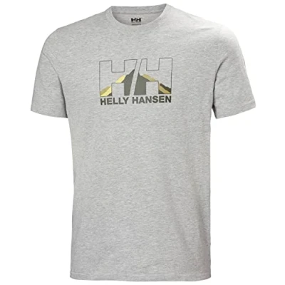 Cotton Polyester Mix T-Shirt Fabric HH Nord Graphic Logo On Across Chest This laid-back tee is made for comfort The fjord and mountain graphics are an ode to the mighty nature in our home: Norway. Items delivered: 1x Helly Hansen Mens - Nord Graphic T-Shirt Apparel Grey Melange S