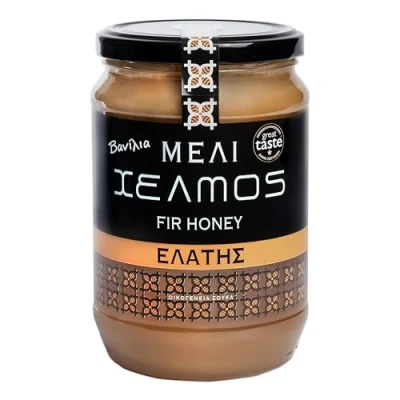 One of the rarest types of honey in the world. Harvested from black fir trees in Arcadia, Peloponnese, evergreen coniferous trees grow to 25–35 meters tall. It is also called vanilla because of its vanilla-like colour. Superior in terms of quality, taste and aroma, it is considered one of the best qualities worldwide. sweet taste with notes of caramel. Mild aroma of fir. Its colour is distinctive because of the creamy highlights created inside that gives it a pearly hue. Honey plays a pivotal role in the Mediterranean diet and has climbed to the top of the food pyramid, as it has an exceptionally high nutritional value for health and gastronomy. Black fir honey has great nutritional and biological value. It is rich in minerals, trace elements, nutrients and vitamins. Perfect for your breakfast, over yoghurt, toast or as a salad dressing. To benefit from the natural properties of honey, consume one tablespoon each morning on an empty stomach.
