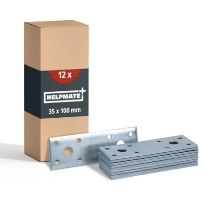 RELIABLE CONNECTION: Our flat connectors from HELPMATE enable a reliable and stable connection of components and furniture, such as post stands, roof constructions, or DIY projects EASY INSTALLATION: The pre-drilled holes allow for easy and quick installation without the need for elaborate tools or special knowledge VERSATILE USE: HELPMATE flat connectors are available in various sizes and designs and can be used for a variety of applications, e.g., for post supports, roof constructions, or DIY projects HIGH-QUALITY MATERIALS: The connecting plates are made of high-quality galvanised, blue-passivated steel, which ensures high stability and durability galvanised: Our HELPMATE flat connectors are provided with a high-quality zinc coating and blue passivation, which protects them from corrosion and ensures high durability, Weight: 1.6314207388 Pounds, Manufacturer: HELPMATE
