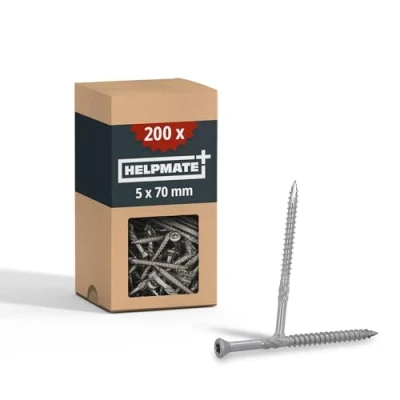 OPTIMAL PROPERTIES: HELPMATE decking screws feature a cutting notch, a shank cutter, and an extra-small countersunk head with milling ribs. Their special design makes them the ideal equipment for decking and timber construction. ROBUST & DURABLE: The decking screws are made of the highest quality A2 stainless steel. This makes them particularly weather-resistant and ensures they last all year round without rusting. EFFORTLESS WORKING: HELPMATE offers versatile product solutions for effortless, safe, and precise working without splintering or splitting the construction timber. Thanks to the T-drive, the screw head can be held in place without wobbling. VARIOUS APPLICATIONS: The stainless steel screws are suitable for various indoor and outdoor construction projects such as terrace construction, garden sheds, sandboxes, roof structures, and much more. They can be used to screw softwoods and hardwoods together. GERMAN QUALITY CONTROL: HELPMATE products undergo quality control in Germany to ensure safe and professional operation., Weight: 2.8219169536 Pounds, Manufacturer: HELPMATE