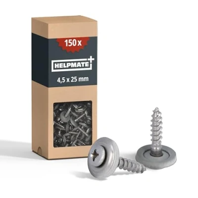 EASY TO USE: HELPMATE roofing screws are the ideal fastener for wooden or concrete substructures in outdoor areas and damp rooms. The partial thread ensures that the screw can be screwed in quickly and without gaps. ROBUST & DURABLE: The sheet metal roof screws are made of the highest quality A2 stainless steel. This makes them particularly weather-resistant and able to withstand the elements all year round without rusting. VARIOUS APPLICATIONS: The screws are suitable for various construction projects, such as fastening corrugated sheets, wall cladding, connecting profiles, roof panels, plastic cladding, flange fastenings, solar systems, and much more. PERFECTLY SEALED: The stainless steel screws are supplied with a pre-mounted EPDM sealing washer. This protects the material from moisture and dirt penetration. GERMAN QUALITY CONTROL: HELPMATE products undergo quality control in Germany to ensure safe and professional operation., Weight: 0.00220462262 pounds, Manufacturer: HELPMATE