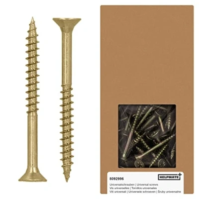 Versatile use: the HELPMATE universal screws are ideal for connecting two wooden elements, whether indoors or in protected outdoor areas. Flush countersinking: the countersunk head allows for a flush, smooth countersinking of the screw and also protects the surface. DURABLE: Made from galvanised, yellow passivated steel, the screws provide easy corrosion protection. No pre-drilling: work without splintering or splitting the timber thanks to the conical tip. Pre-drilling for soft woods is no longer necessary Partial thread: the partial thread allows a quick, gap-free tightening of the upper component. Leaves no unsightly gaps in 2 components to be connected., Weight: 2.314853751 Pounds, Manufacturer: HELPMATE