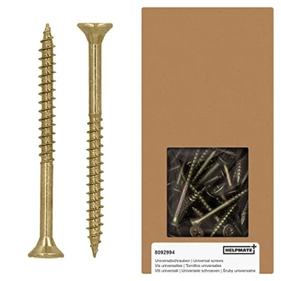 Versatile use: the HELPMATE universal screws are ideal for connecting two wooden elements, whether indoors or in protected outdoor areas. Flush countersinking: the countersunk head allows for a flush, smooth countersinking of the screw and also protects the surface. DURABLE: Made from galvanised, yellow passivated steel, the screws provide easy corrosion protection. No pre-drilling: work without splintering or splitting the timber thanks to the conical tip. Pre-drilling for soft woods is no longer necessary Partial thread: the partial thread allows a quick, gap-free tightening of the upper component. Leaves no unsightly gaps in 2 components to be connected., Weight: 2.3809924296 pounds, Manufacturer: HELPMATE