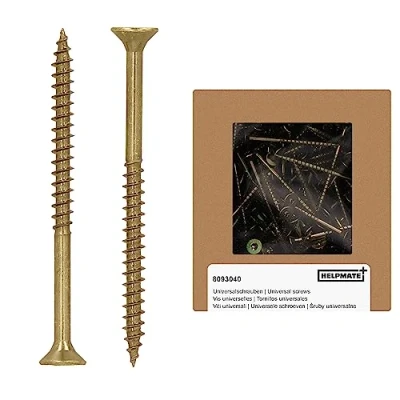 Versatile use: the HELPMATE universal screws with T-drive are ideal for connecting two wooden elements, whether indoors or in protected outdoor areas. Flush countersinking: the countersunk head allows for a flush, smooth countersinking of the screw and also protects the surface. DURABLE: Made from galvanised, yellow passivated steel, the screws provide easy corrosion protection. No pre-drilling: work without splintering or splitting the timber thanks to the conical tip. Pre-drilling for soft woods is no longer necessary Partial thread: the partial thread allows a quick, gap-free tightening of the upper component. Leaves no unsightly gaps in 2 components to be connected., Weight: 1.13097140406 pounds, Manufacturer: HELPMATE