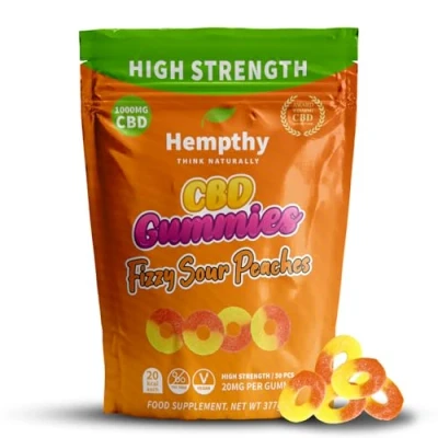 **High Strength CBD Formula:** Hempthy CBD Gummies offer 20mg of high strength CBD per gummy, providing a total of 1000mg of CBD to cater to your everyday wellness needs. **THC-Free & Safe:** These gummies are THC-free, ensuring you get all the benefits of CBD without any psychoactive effects, making them perfect for everyone. **Everyday CBD Gummy Format:** A convenient and enjoyable way to include CBD in your daily routine. These gummies offer a simple alternative to oils or capsules, with no measuring or preparation required. **Suitable for Daily or Evening Use:** Designed to fit easily into an everyday lifestyle, these CBD gummies can be taken at a time that suits your personal routine, making them a flexible option for adults. **Simple Addition to a Balanced Lifestyle:** Created for modern living, these CBD gummies provide a straightforward way to incorporate CBD as part of a general wellness routine, without complexity or inconvenience. **Superior Quality Edible Gummies**: Our Hempthy sour peach gummies are made with premium ingredients and high strength CBD to ensure optimal effectiveness and great taste. **CBD Sweets with High Potency**: Each bottle contains gummies at 20mg each, providing consistent dosing that supports enhanced sleep quality and overall wellness throughout your day. **UK-Made, Quality Assured:** Produced to high manufacturing standards and independently tested, Hempthy CBD Gummies contain no THC and no unnecessary additives, offering confidence in quality and consistency with every batch.