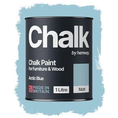 Hemway Arctic Blue Chalk Paint 1L Matt Shabby Chic Interior Furniture, Walls, Wood, Wardrobes, Doors, Tables, Chairs, Quick Dry Smooth Chalky Finish (17 Blues & 118 Colours Available)