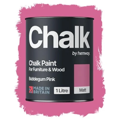 Hemway Bubblegum Pink Chalk Paint 1L Matt Shabby Chic Interior Furniture, Walls, Wood, Wardrobes, Doors, Tables, Chairs, Quick Dry Smooth Chalky Finish (9 Pinks & 118 Colours Available)