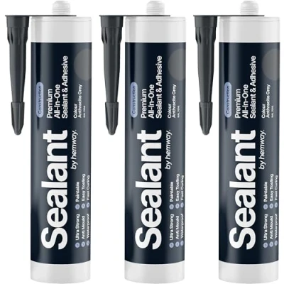 Hemway Construction All In One Hybrid Polymer Sealant & Adhesive Anthracite Grey Waterproof Paintable 300 ml (3 Pack)