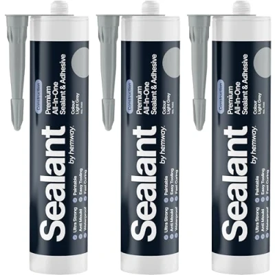 Hemway Construction All In One Hybrid Polymer Sealant & Adhesive Light Grey Waterproof Paintable 300 ml (3 Pack)