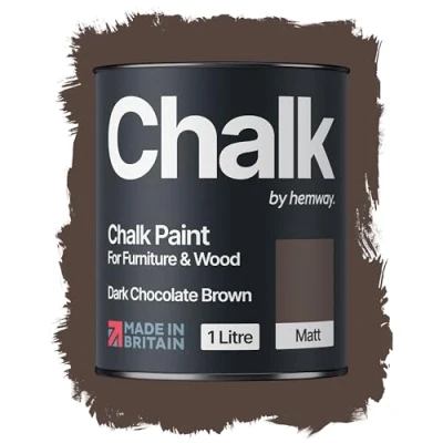 Hemway Dark Chocolate Brown Chalk Paint 1L Matt Shabby Chic Interior Furniture, Walls, Wood, Wardrobes, Doors, Tables, Chairs, Quick Dry Smooth Chalky Finish (40 Neutrals & 118 Colours Available)