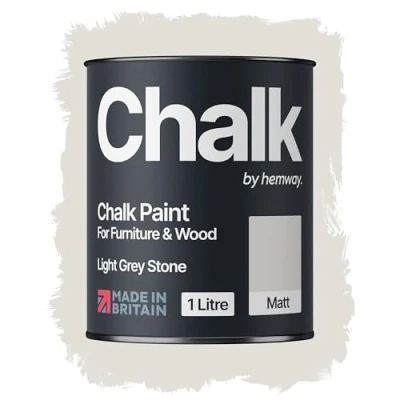 Hemway Light Grey Stone Chalk Paint 1L Matt Shabby Chic Interior Furniture, Walls, Wood, Wardrobes, Doors, Tables, Chairs, Quick Dry Smooth Chalky Finish (40 Neutrals & 118 Colours Available)
