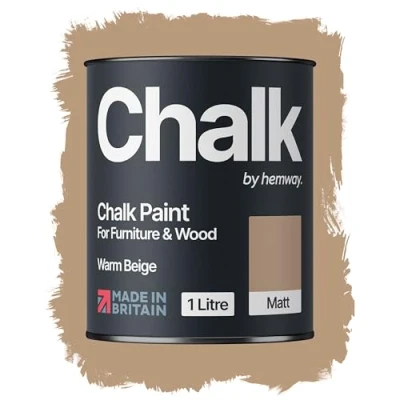 Hemway Warm Beige Chalk Paint 1L Matt Shabby Chic Interior Furniture, Walls, Wood, Wardrobes, Doors, Tables, Chairs, Quick Dry Smooth Chalky Finish (40 Neutrals & 118 Colours Available)