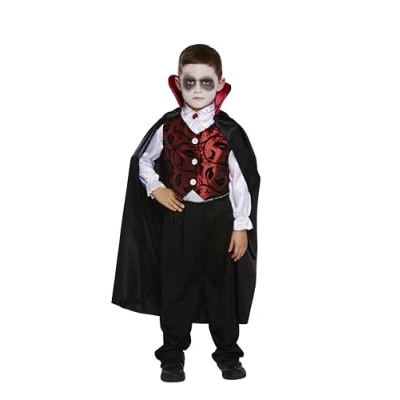 1x Deluxe Children's Vampire Costume Set for Kids. Includes White Shirt, Black Trousers, Red Waistcoat, and Cape Size: Large / Ages 10-12 Years (Height 152 cm) Perfect for Halloween, Parties, World Book Day, and Cosplay Tested to EN71 and Nightwear Safety Standards, Manufacturer: Henbrandt