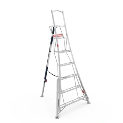 Material: Constructed with durable aluminium, ensuring long-lasting use Adjustable Legs: Independently adjustable legs suitable for various surfaces, allowing use on slopes and soft ground Platform: Features a spacious 18cm platform and guardrail providing comfort and stability during use Lockable Legs: Secure locking mechanism, the hedge-proof locking pin, prevents legs from becoming dislodged during use Certification: Fully Certified to EN131 standards, ensuring safety and reliability, rigorously tested