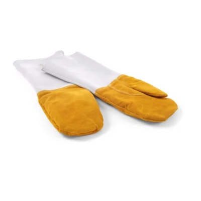 Safely remove your oven dishes from the oven with these stylish Hendi oven mitts leather - 2 pieces! Made of cowhide leather, the oven mitts are white and yellow in color. The forearms of the mitts are extra long so that the forearms are also protected. The Hendi oven mitts leather - 2 pieces comply with the directive for personal protective equipment and are heat resistant to 250 degrees.