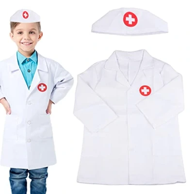 Pack of 4 doctor costume for role play costume: the children's costume in pure white has a wide cuff and an open front to be more realistic and provide different children with a better fit. The children's doctor's coat is used together with the doctor's case so that children have the fun of becoming a little doctor and fulfilling their childhood dreams Child-friendly material: our doctor play set for children is made of high-quality polyester, this doctor costume is non-toxic and completely safe Fun role play toy: put on well-fitting doctor's costume, children can play their imagination and play doctor's games with friends and families and enjoy their special happy time Excellent dressing of toy toys: the interface of the doctor set without redundant thread keeps the entire game kits always of high quality. The children's doctor costume is washable and easy to clean and wear. Good wearing and playing experience for children. Suitable as birthday gifts for children or Christmas gifts for children boys girls 3 4 5 6 7 years Perfect gift for children: paediatrician set, perfect for parties, Halloween parties, theme parties, doctor children's costumes, Halloween costume girls, boys laboratory coat children, Halloween costumes, Halloween and carnival role play, activities, daily games, school games, holiday games, birthday gifts, Christmas gifts, etc. It is also an excellent interactive toy to promote parent-child relationship during family role play, Manufacturer: HENGBIRD