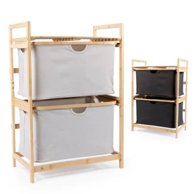 HENNEZ Bathroom Shelf, 2 Compartments, Bamboo Shelf with and Baskets, Drawer Boxes, Standing Ideal as a Chest of Drawers & Laundry Hamper, Sorter Fabric