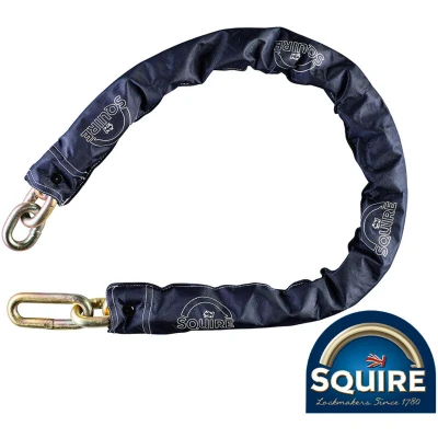 General description A range of high security hardened alloy steel chains that are Sold Secure approved for cycles and motorcycles, featuring signature Squire blue sleeves.