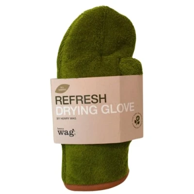 Henry Wag Refresh Dog Drying Glove 28.5cm x 16cm 2cm 50% Bamboo, GRS Recycled Polyester Highly Absorbent, Quick Drying, Eco Friendly Pet