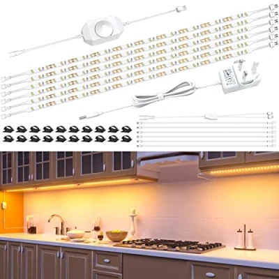Hensam Under Cabinet Lights, 6PCS*50cm LED Strip Lights,Dimmable Counter Lights for Kitchen, Shelf, Cupboard,Cabinet,Closet,12V Adapter,Dimmer,3000K Warm White,180 LED,1500lumen