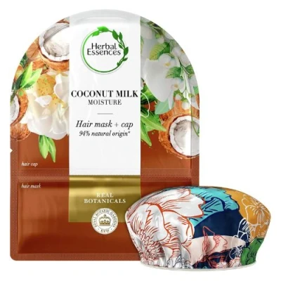 Experience deep hydration with Herbal Essences Coconut Oil Hair Mask! Made with 94% natural origin ingredients, this cruelty-free hair mask is free of paraffins, sulfates, and colorants. Partnered with Royal Botanic Gardens, Kew, for real botanical benefits. Includes a reusable shower cap for added convenience.. 1 x Herbal Essences Coconut Oil Hair Mask & Reusable Shower Cap 20ml. Reusable shower cap. Cruelty free, as certified by PETA. 94% natural origin (purified water and natural-source ingredient materials with limited processing)