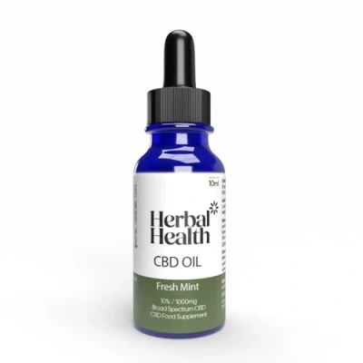 Herbal Health CBD Oil Drops 1000mg 10ml Fresh Mint Flavour Broad Spectrum 10% for Sleep & Anxiety Support