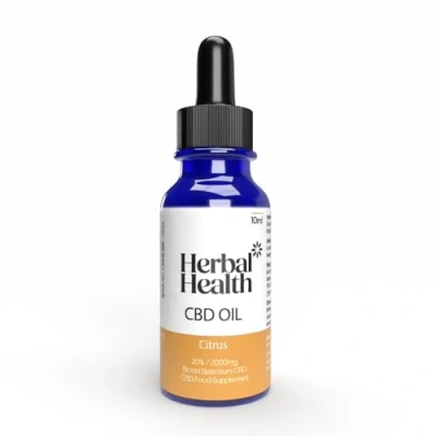 Herbal Health CBD Oil Drops 2000mg High Purity Citrus Flavour 20% Blended with Naturally Sourced MCT Supports Sleep & Anxiety THC Free 10ml (18+)