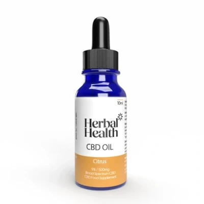 Herbal Health CBD Oil Drops 500mg High Purity Citrus Flavour 5% Blended with Naturally Sourced MCT Supports Sleep & Anxiety THC Free 10ml (18+)