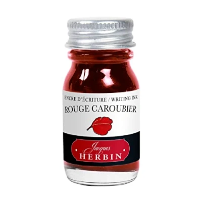 Herbin 11522T 10ml bottle of ink for fountain pens and rollerball (product without packaging zero waste objective), Rouge caroubier/Carob red