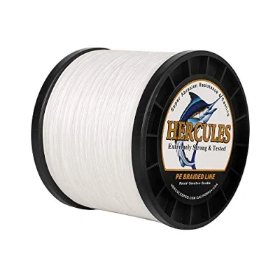 Hercules Braided Fishing Line 2000m 2187yds 6lbs 100lbs Pe Superline 4 Strands (White 100lb/45.4kg 0.55mm)