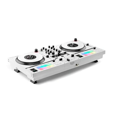 A unique motorized DJ controller that will make you stand out DJs can precisely blend and beatmatch thanks to the standard-sized 7" platters that quickly accelerate from 0 to 33⅓ RPM. Additionally, they can remove the vinyl discs and slipmats from the platters, recreating an authentic turntable experience in a digital format. It’s your turn to get creative Stems – the essential, real-time audio separation tool every DJ needs. With one-button controls to isolate vocals or instrumentals, DJs can effortlessly create personalized mixes on the fly. The possibilities for creating new mashups and blends are endless. Available in DJUCED and Serato DJ. Perfect your transitions Equipped with three FX Select buttons, a paddle, and a Filter knob for each deck, along with an extra control knob and Beat -/+ buttons, the DJControl Inpulse T7 White Edition offers DJs the tools to fine-tune their mixes and transitions using a wide array of effects Equipped with powerful learning tools The controller's interactive features, like the Beatmatch Guide and Intelligent Music Assistant (IMA), offer real-time feedback to help users quickly develop their skills. The Beatmatch Guide shows how to adjust the tempo fader or jog wheel for beatmatching, while the IMA suggests the best upcoming tracks based on energy, key, and tempo.
