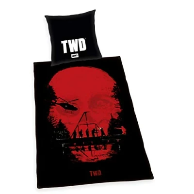 Bedding Set The Walking Dead, Pillow Case 80x80 cm, Duvet Cover 135x200 cm, with smooth-running zipper, Cotton/Renforcé Item number: 4465202050412 Colour: black/red Produced according to Oeko Tex Standard 100